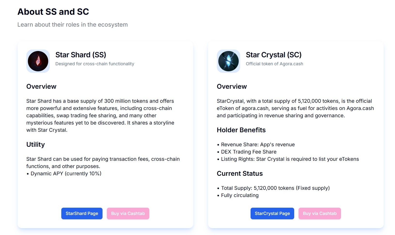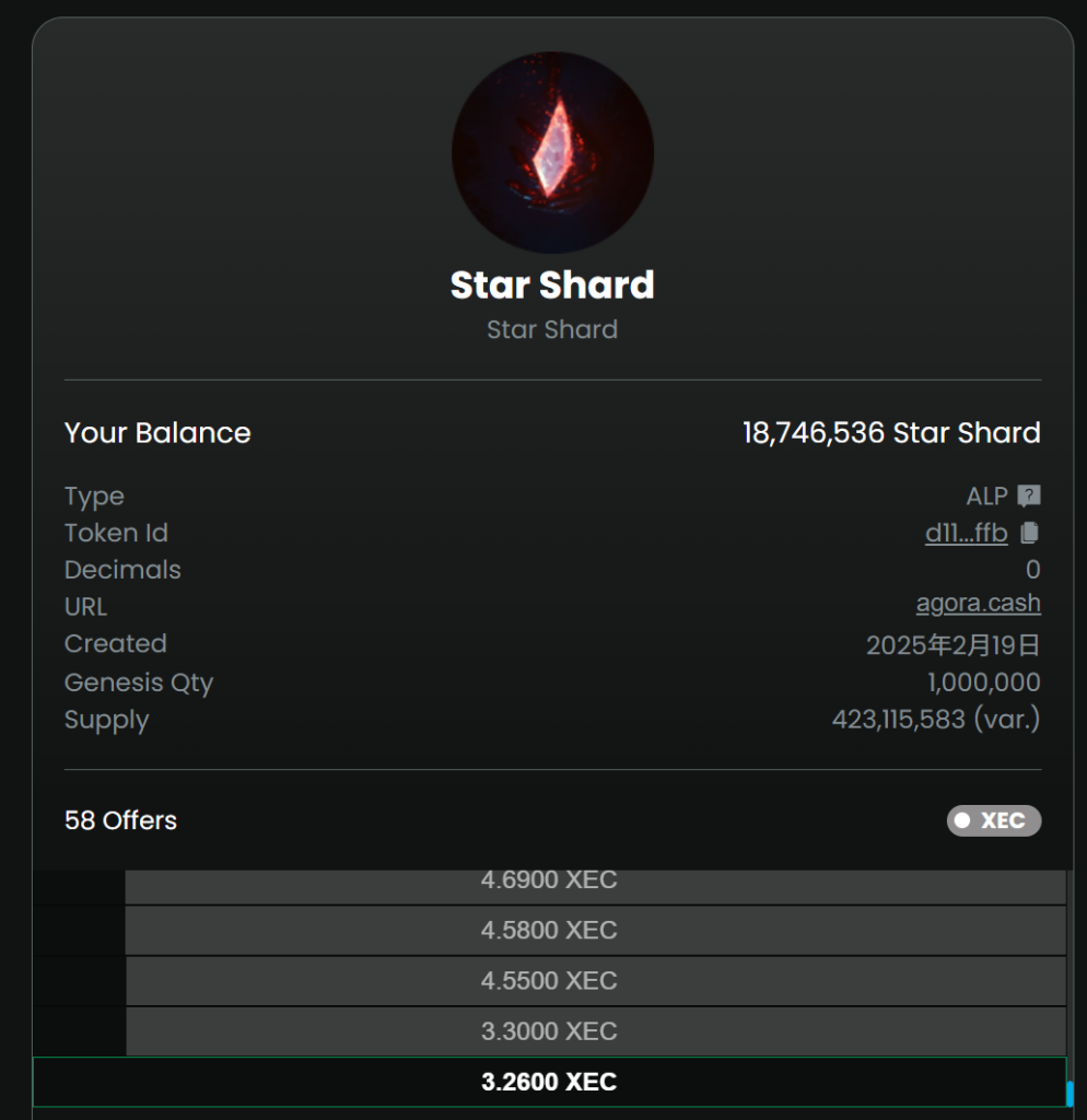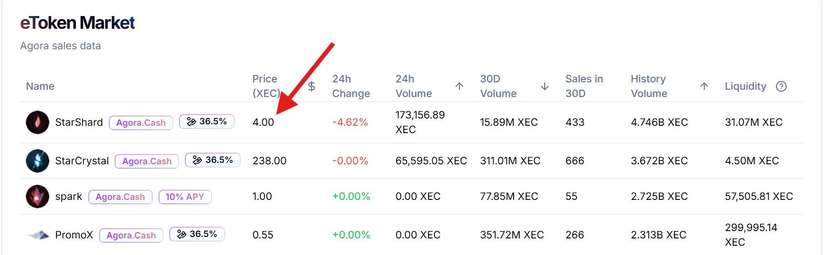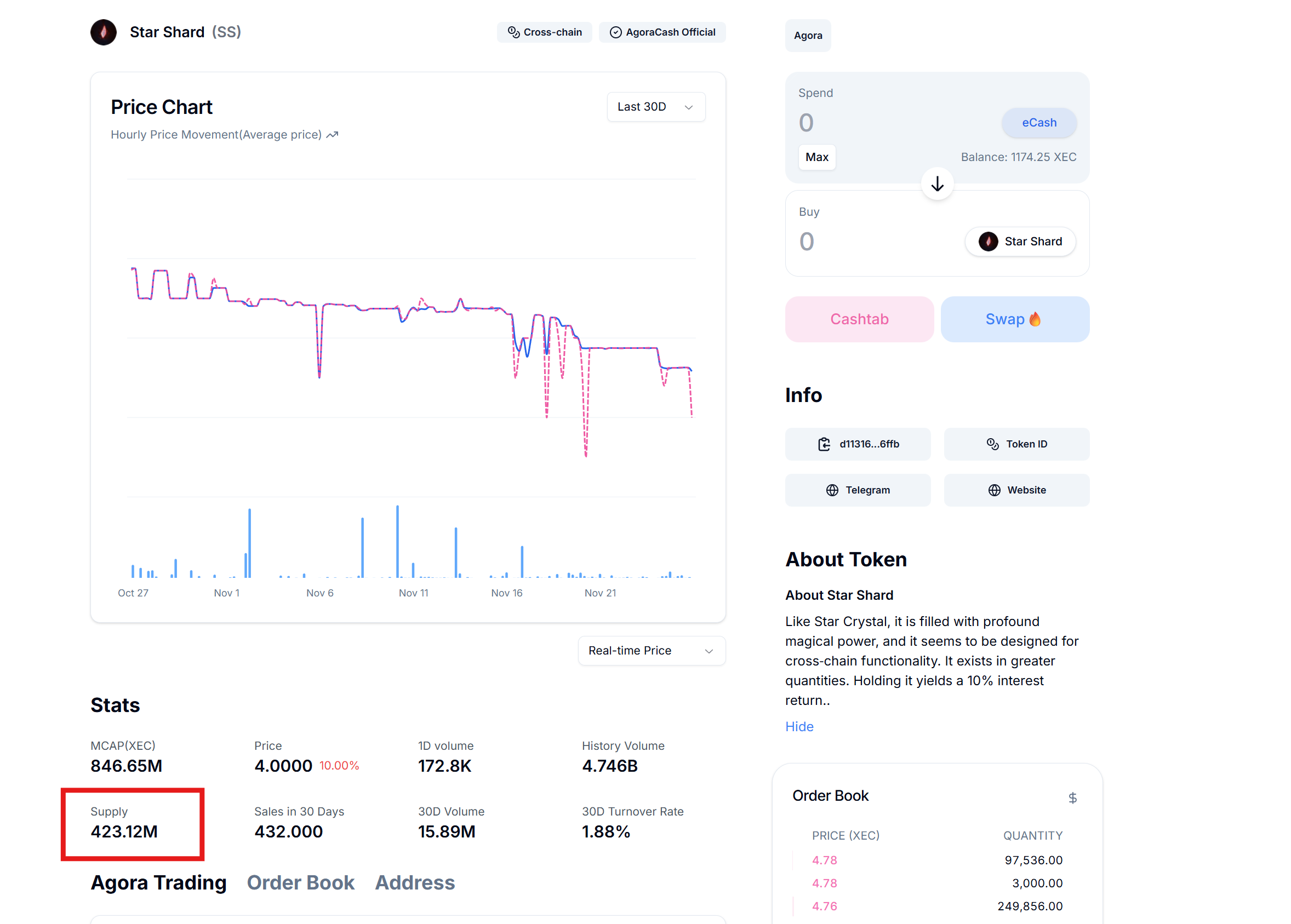 On the agora.cash homepage, orders for Star Shard (SS) below 4 XEC are not displayed, and orders below 2 XEC are not even included in the statistics.