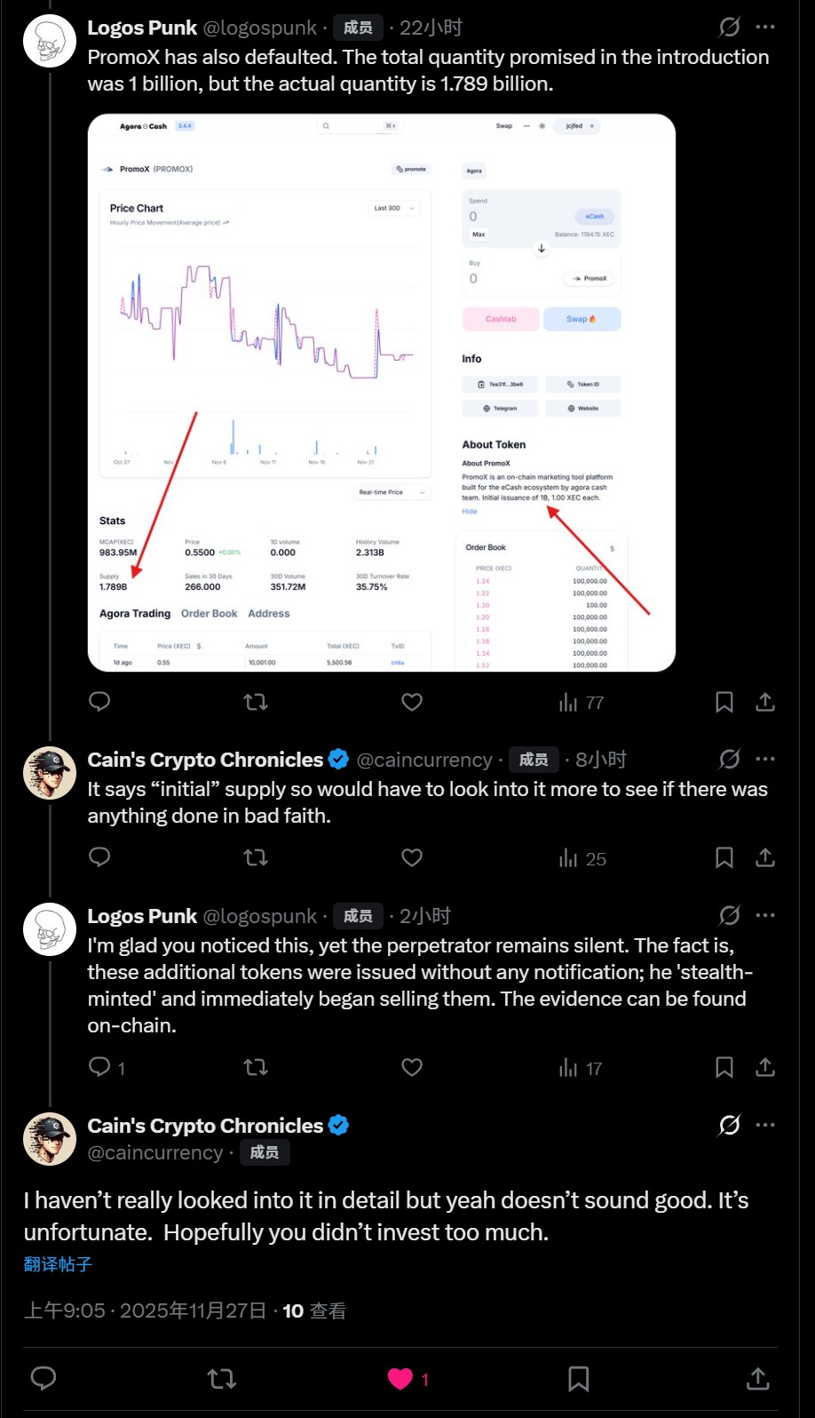 I will update this post with developments and the official response from eCash (if any). This update’s time is 2025-11-26 10:33:09 (UTC-8).