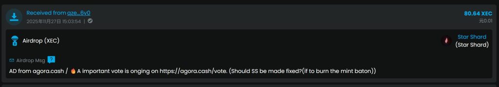 A day has passed, and neither agora.cash nor eCash has responded to this matter. However, I am pleased to see the comment from caincurrency, who is an eCash community KOL and the author of ProofOfWriting.com.