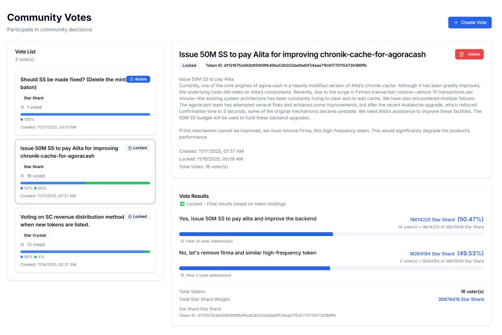 This kind of vote is meaningless because the owner of agora.cash controls the vast majority of the capital/tokens, allowing them to achieve any result they desire.