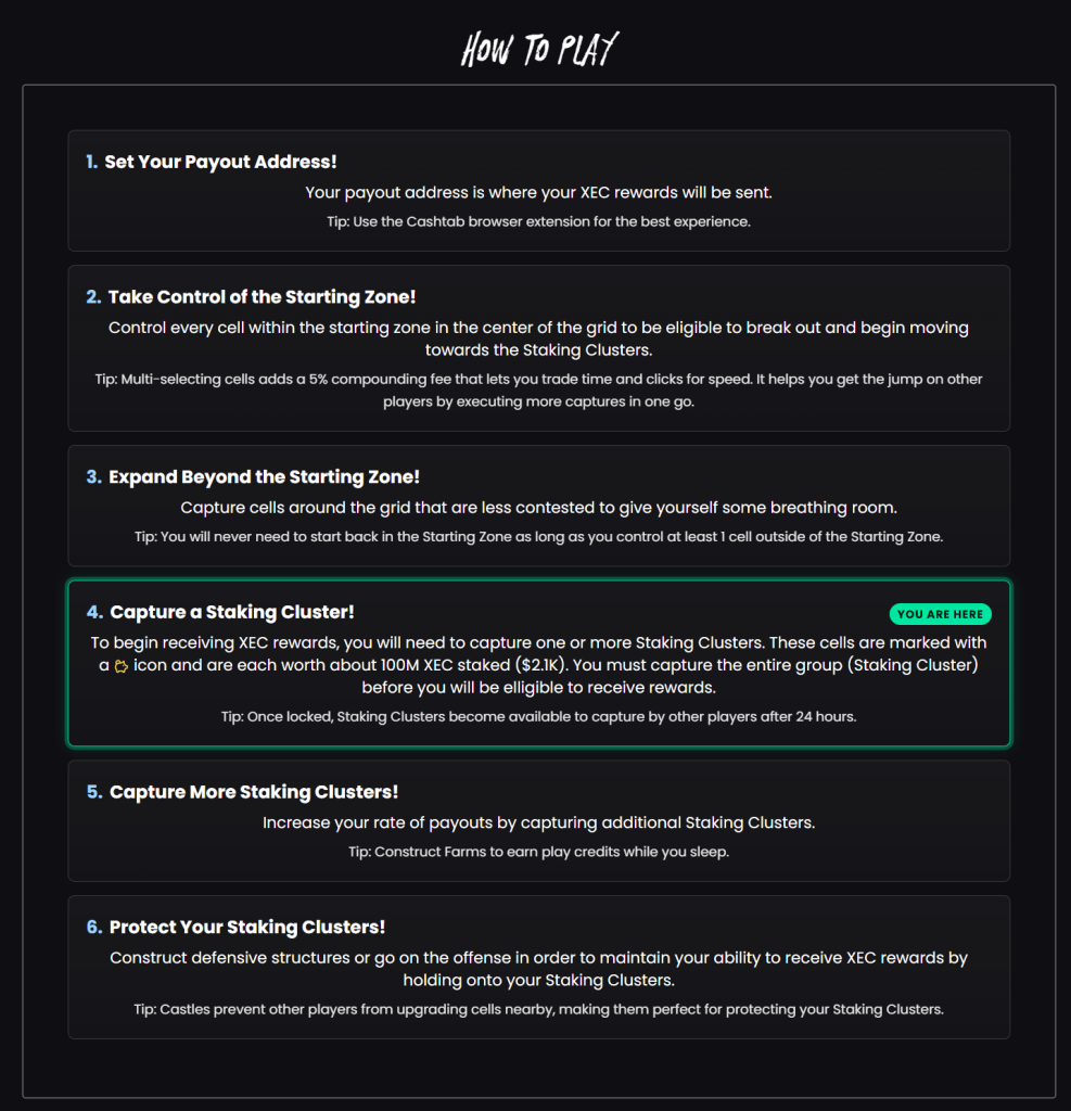 - First, you must register with an XEC wallet. This is mandatory; otherwise, you can only act as a spectator.