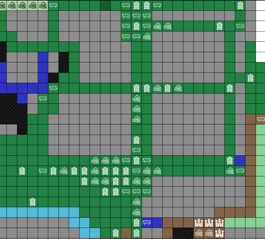 Additionally, you can see how fully they utilized the terrain advantage: just one “castle” (city wall) is enough to defend two farmlands.